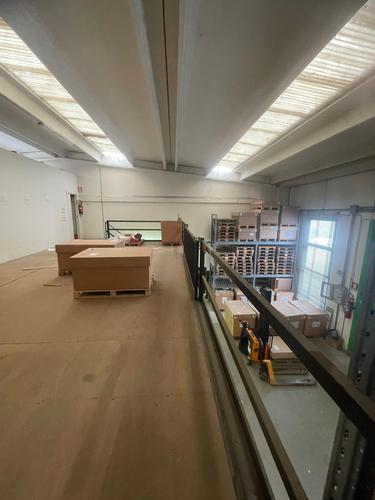Il capannone si trova al piano terra e dispone di doppio ingresso pedonale e carrabile facilitando l'accesso e la logistica. Internamente, l'ambiente è circolare su due lati ed è suddiviso in: unico ambiente di 350 mq al piano terra e 150 mq al piano primo con 5 stanze ad uso ufficio, una zona per archivio documentazione oltre ad un soppalco di 50 mq. Accessoriato con doppi servizi, aria condizionata e pompa di calore, porte blindate, bandone manuale e impianto di videosorveglianza.